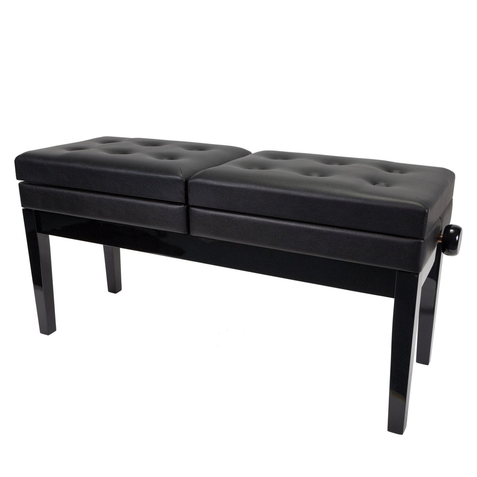 The Crown CPS-26-BLK features a soft double-padded faux leather seat, a sturdy wood frame, an under-seat storage compartment, and a heavy-duty metal mechanism for adjusting the height of the seat.